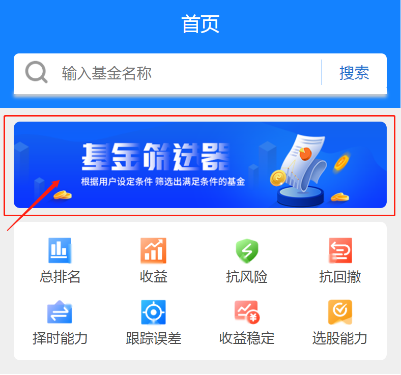 首先,在基金通首页上方,我们可以找到“基金筛选器”模块。