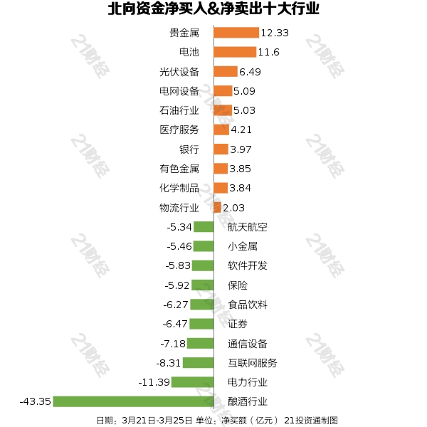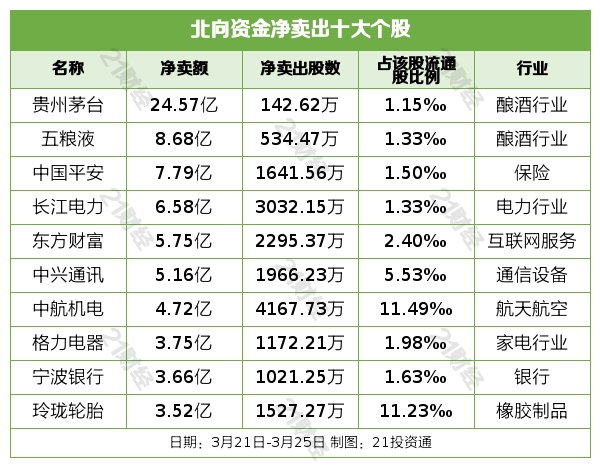 据21投资通(微信号ID:touzit21)智能监测,3月21日-3月25日,北向资金连续5日净卖出,累计净卖出127.78亿元。其中沪股通累计净卖出63.72亿元,深股通累计净卖出64.07亿元。