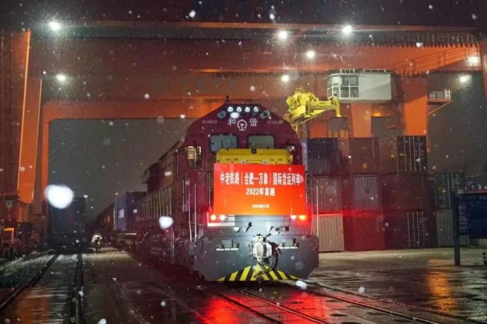 2022年1月29日,安徽新年首趟中老铁路(合肥—万象)国际货运列车从合肥北站物流基地启程。