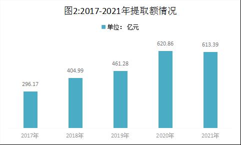 《报告》数据显示,2021年,共计344.95万名缴存职工提取住房公积金;提取额613.39亿元,同比减少1.20%;提取率64.63%,比上年减少11.81个百分点。而在提取金额中,包括购房、租房、还贷等住房消费类提取占88.48%,离休和退休等非住房消费提取占11.52%。