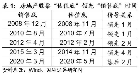 (1)“销售底”出现前,“稳地产”政策陆续推出,提振房地产股票估值;