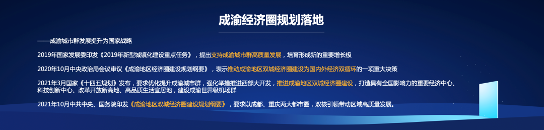 因此,我们可以看到成渝城市群发展自2019年至今逐步提到国家战略的高度,区域的经济带动人口迎来了高质量发展的契机。