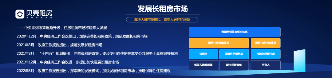 在近期中央重要的报告及会议表述中,对我国未来租赁市场的发展给出了清晰的方向。自2020年首次提出发展长租房至今,中央的系列政策也逐渐升级,描绘出我国租赁住房供应体系的一副全景图,在租赁住房保障体系中,一方面通过公租房和保障性租赁住房解决不同层级市民的居住问题,但租赁群体的规模是巨大的,全国仅新市民群体就有3亿人,且还将继续扩大。这么大规模的需求一方面需要由政府保障兜底,但长期看各级财政是难以承受的。因此,关键是需要激发市场主体活力,发展专业化的长租机构来解决大城市不同层级市民的租住问题。
