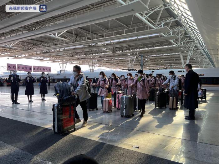 4月3日下午,一批天津援沪医务人员乘坐G267次列车抵达上海虹桥站,将根据相关部门安排奔赴上海抗疫一线。当天,来自武汉、天津、江西、山东等地数千名医务人员携带医疗物资,分别乘坐10趟高铁列车抵达上海。