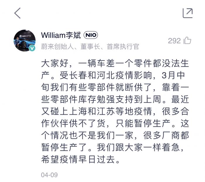 近日,蔚来汽车CEO李斌在蔚来汽车用户App中留言称,“原材料特别是电池原材料今年涨得太多,近期也看不到下降等趋势,涨价也是迫不得已啊,还请大家理解。”
