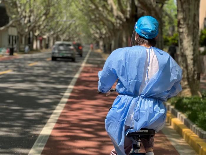 4月12日早上8时许,被划为“防范区”的街道上出现了第一批外出的市民。嵇先生居住于长宁区新华路街道某小区,他正前往不远处一家营业中的全家便利店。他透露,虽然家中物资充足,不过都是依靠社区发放、团购采买,品种略显单调。