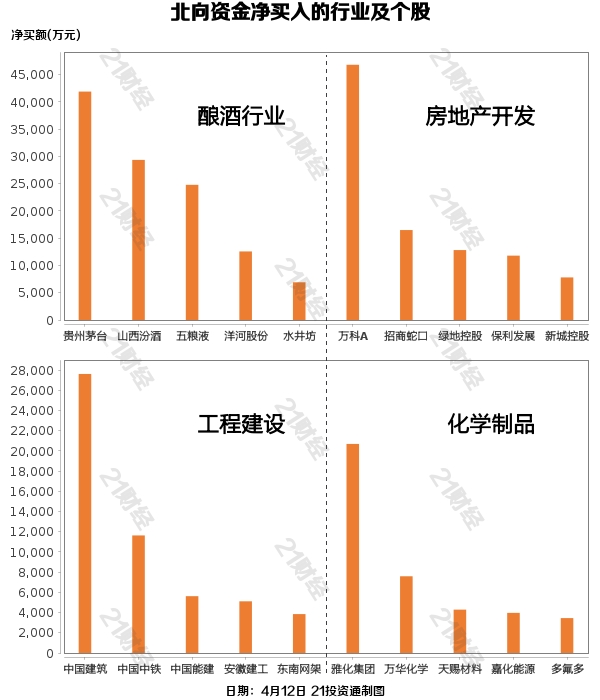 据21投资通(微信号ID:touzit21)智能监测,4月12日,北向资金结束了此前连续4日净流出的态势,净买入91.37亿元,其中沪股通净买入42.27亿元,深股通净买入49.1亿元。