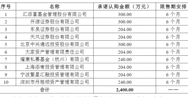 战略配售环节,公司共吸引10家战投。合计承诺认购金额为2400万元。