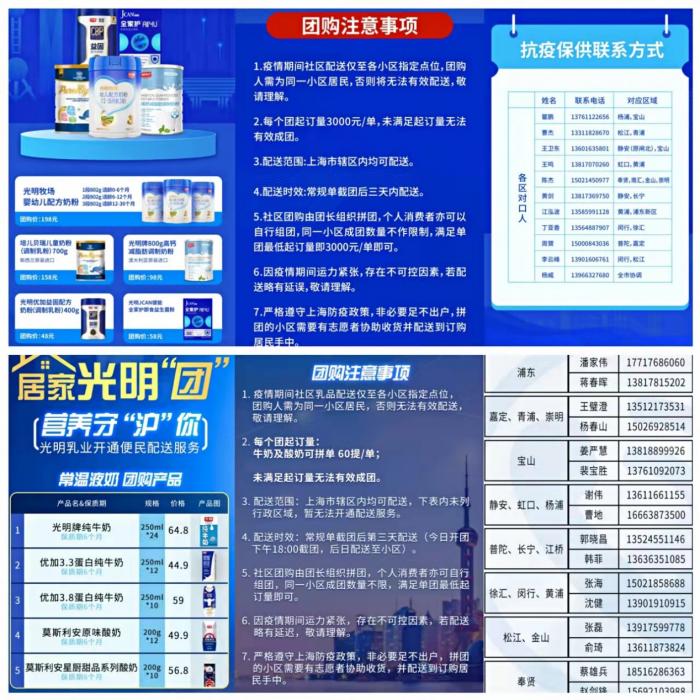 光明乳业还介绍,目前光明常温牛奶、光明奶粉、光明冷饮、牛奶棚等产品可分区由指定人员对接社区团购。“奶瓶子”供应事关民生需求,希望在封控管理期间,一瓶陪伴市民成长的光明牛奶能带来一份安心、一份放心、一份信心。