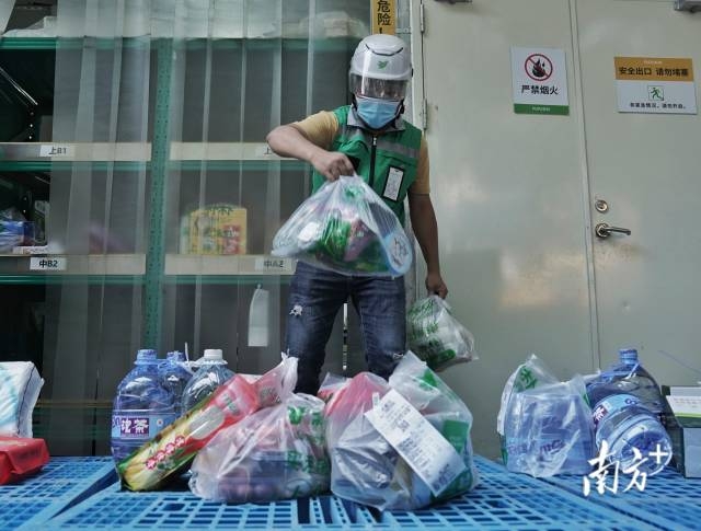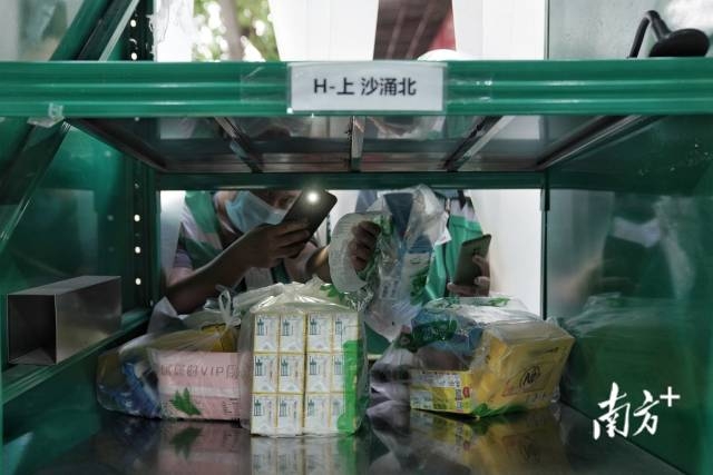 因防疫要求,管控区内的每个小区门前都特别设立了物资送货点,保证物资配送过程中内外部人员无接触。“全天120单,一天下来近80公里,要耗费两块电池,我们都以最快的速度送到客户楼下,打电话让客户来自取。”王璐尧说。