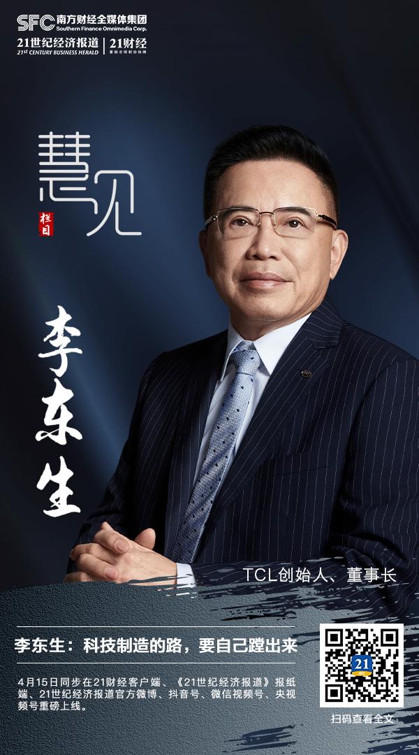 3月28日,TCL创始人、董事长李东生在广东惠州TCL科技大厦接受了21世纪经济报道《慧见》栏目的独家专访,讲述了TCL成立40年来跌宕起伏、大得大失的惊心动魄的商业故事。