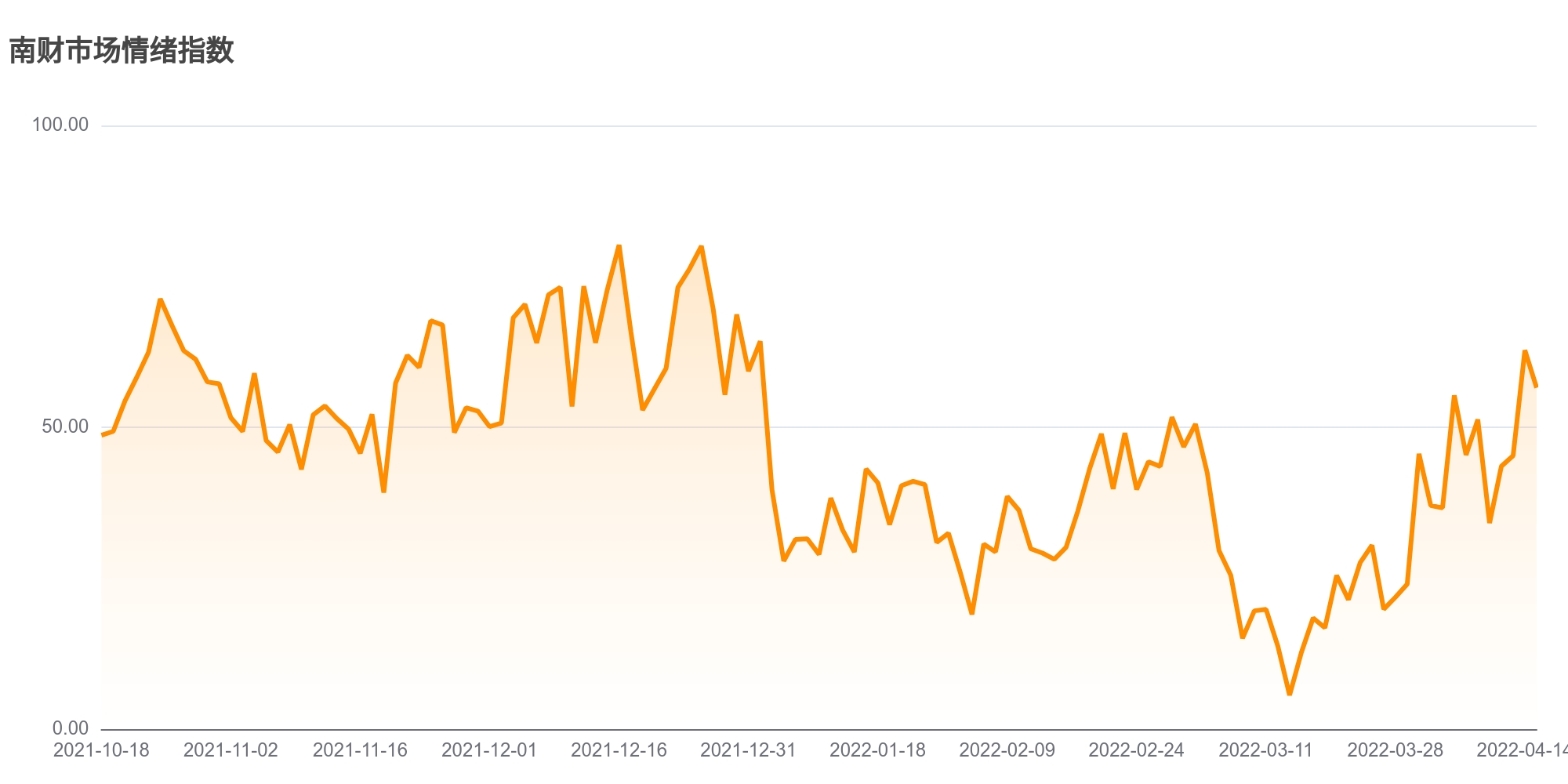 今日南财市场情绪指数为56.6,较前日62.8大幅下跌,市场投资热度明显降低。A股市场的行为是非常情绪化的,当市场上涨时,投资者趋于贪婪,产生追涨情绪;当市场下跌时,往往会失去理智急于出售他们的资产。为量化投资者当前对购买股票的情绪程度,基于中国波指(iVIX)与CNN恐慌贪婪指数,南财量化团队挑选出五大指标,综合加权得到了南财情绪指数。南财情绪指数范围从0-100,越低表明市场投资热度较低,越高表明市场投资热度较高。南财情绪指数有助于市场参与者更好地认识和分析股票市场的波动风险和跳跃风险,市场投资热度偏低表明投资者过于担心,如果当前市场定价并不高,这可能是一个买入机会。市场投资热度偏高则表明投资者过于兴奋,如果市场处于高位,市场可能会进行调整。南财情绪指数的发布,不仅有利于投资者进行更佳的风险管理,也为维持金融市场的稳定繁荣提供了有效的参考依据。