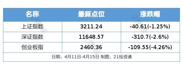 过去一周,A股走势分化。上证指数周跌1.25%,深证成指周跌2.6%,创业板指周跌4.26%,再创今年新低。