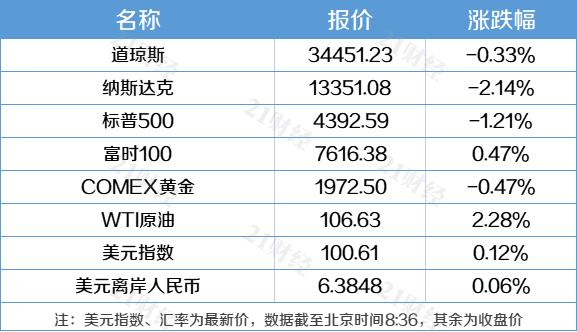 美股上周全线收跌。上周四,道指跌0.33%报34451.23点,周跌0.78%;纳指跌2.14%报13351.08点,周跌2.63%;标普500指数跌1.21%报4392.59点,周跌2.13%。