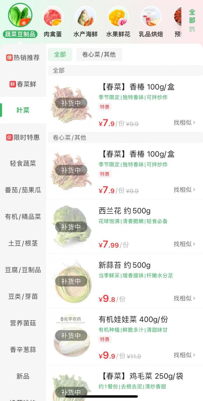 另一位用户则告诉记者,下午自己在美团上买了点菜,但出了傍晚朝阳区的核酸消息后,再想多下点单,许多蔬果就已处于缺货状态。“后来想去家附近的超市买点蔬菜,但只捞到一点毛豆。”