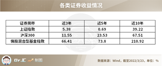 这一规律不仅体现在宽基指数上,对于主动权益类产品来说,也是如此。并且,在专业管理人的纪律投资下,主动权益类产品往往能够更好地积累长期超额收益,这一点从偏股混合型基金指数近3年、5年、10年的走势中可以看出,与同期的宽基指数对比,其收益要高出不少。