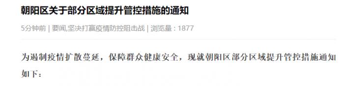 据“北京朝阳”客户端消息,北京朝阳区新型冠状病毒肺炎疫情防控工作领导小组办公室2022年4月25日就朝阳区部分区域提升管控措施发布通告: