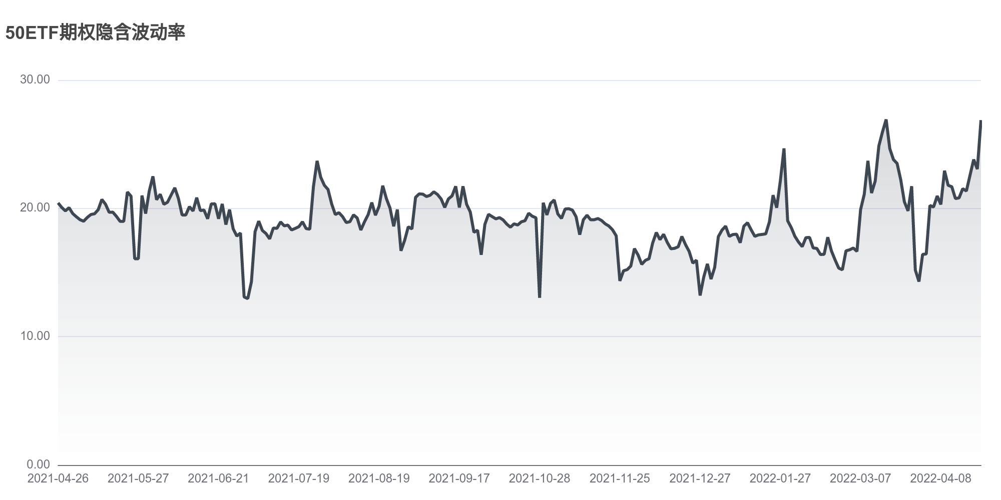 今日该指标值为26.88,目前该指标处于近一年较高区间,说明投资者认为未来市场波动处于较高水平。50ETF期权波动率(原中国波指iVIX,也称作恐慌指数),指数与上证指数存在负相关性,但不绝对。指数点位越高,代表投资者预期后市波动程度愈加激烈;指数点位越低,代表预期后市的走势愈加平稳。VIX在剧烈波动处有聚集的特征,而这些波动聚集处通常是在市场剧烈波动,或指数的低点和高位处。那么,在股指高位处的 VIX 聚拢高企意味着市场风险的集中;而股指快速下跌处的 VIX 高企意味着市场风险的释放。若VIX指数在股市快速下跌时持续的高企并突破极值,这可能预示市场的重大转折——风险已经释放到极致,股市将开始企稳并上扬。