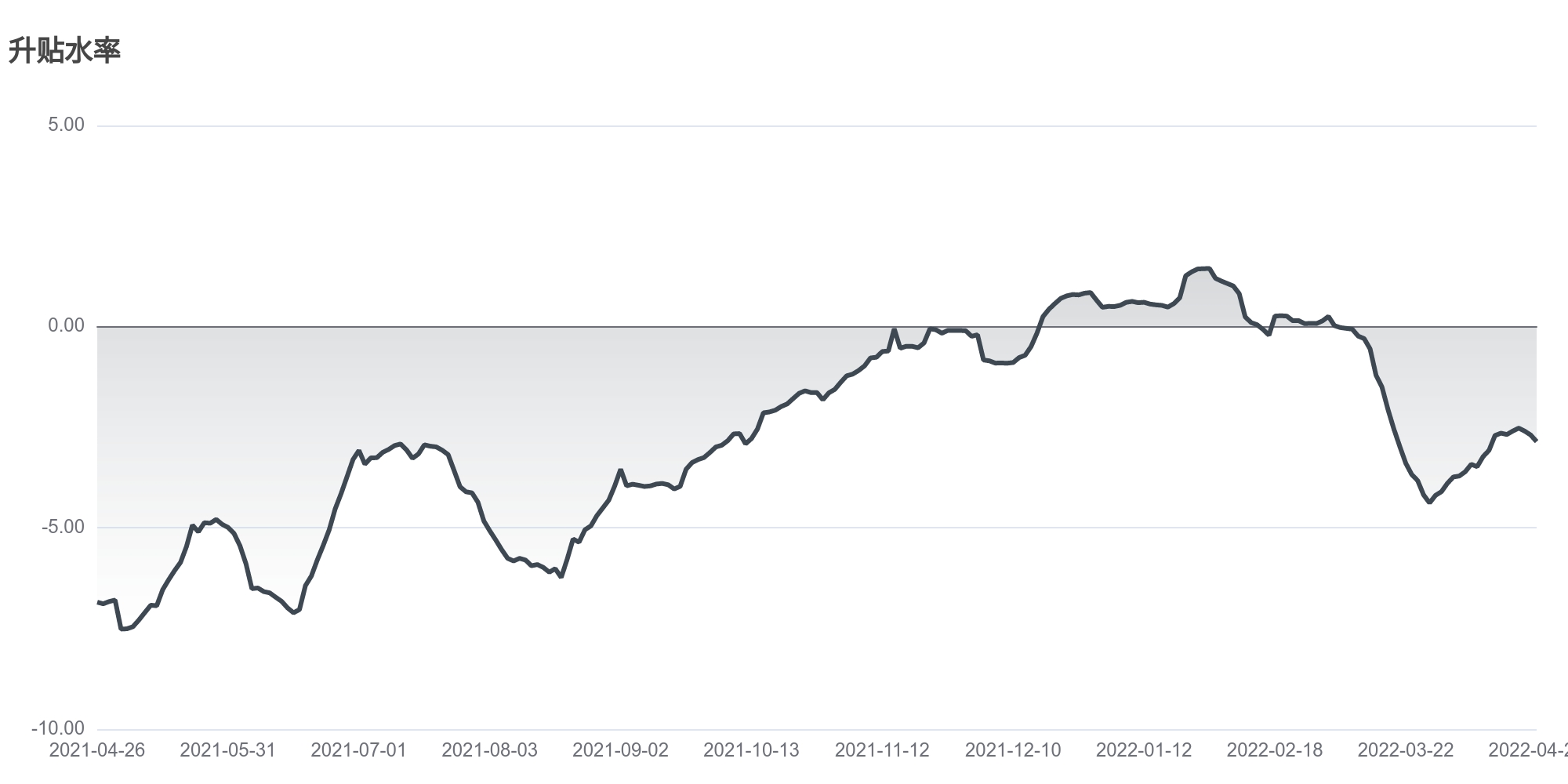 今日该指标值为-2.86%,目前该指标处于近一年中立区间,说明投资者对A股持中立情绪。反映期货市场投资者对市场的看法,该指标越高说明投资者认为当前市场较强,越低则说明认为市场相对较弱,因而与上证指数正相关。
