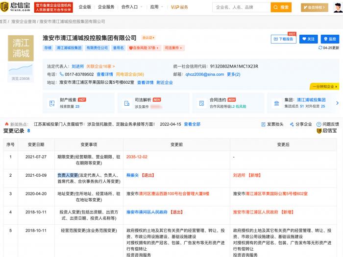 清江浦城投控股集团官网显示,淮安清江浦城投控股集团由清江浦区政府全资投资的国有公司,集团拥有29家子公司,总资产600多亿元,净资产值400多亿。