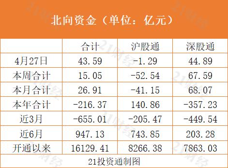 北向资金继续回流,已连续两日录得净流入。据21投资通(微信号ID:touzit21)智能监测,北向资金全天净买入43.59亿元,内部分化依旧,其中沪股通净卖出1.29亿元,深股通净买入44.89亿元。