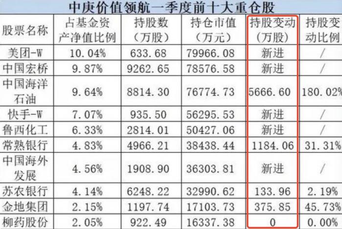 事实上,一季度中庚价值领航十大重仓股中一半是港股,并包揽前4名,港股的美团—W取代兖矿能源,新进成为第一大重仓股。此外,中庚价值领航的重仓股还包括港股上市的中国宏桥、中国海洋石油、快手-W、中国海外发展等。