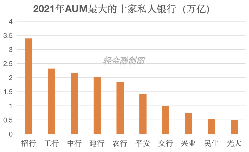 私人银行AUM超过1万亿的6家银行中,包括了4家国有行,即中、农、工、建,2家股份行,即招行、平安银行;