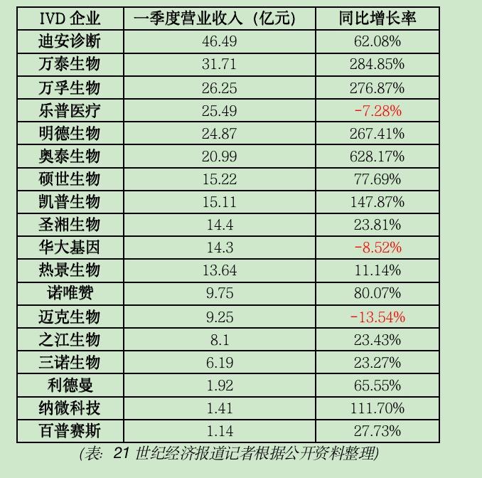 21世纪经济报道记者 唐唯珂 实习生 鹿思佳 广州报道 近期IVD企业接连披露2022年一季度财报。