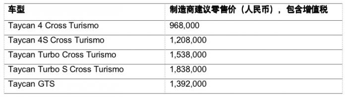 值得一提的是,和此前在售的Taycan一样,Taycan Cross Turismo有4个版本的车型同时预售。因此,Taycan 家族现在在中国市场提供的车型一共9款(Taycan的4个版本、Taycan Cross Turismo的4个版本以及Taycan GTS),涵盖跨界多用途车和轿跑两种车身形式。
