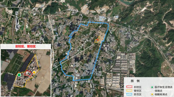 封控区:三凤一队一巷以南、三凤一队三巷以北、特维斯精选酒店西侧以东、三凤一队街以西区域;三凤二队二巷以南、三凤二队一巷以北、翔岐路以东、二队十二巷以西区域。