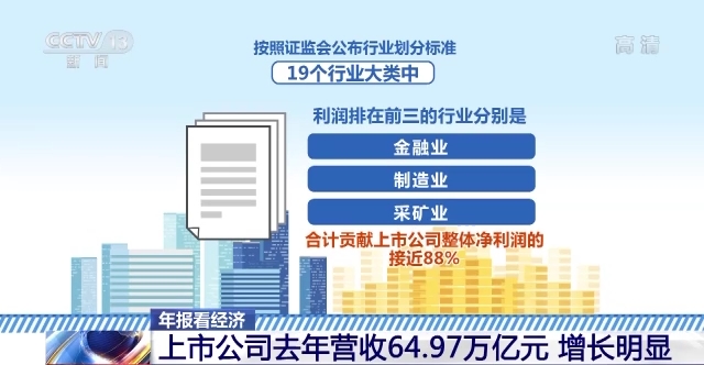 2021年,上市公司共实现营业总收入64.97万亿元,同比增长19.81%,远高于当年GDP增速。全年共实现净利润5.30万亿元,同比增长19.56%。约八成公司实现收入增长,四成公司收入连续三年持续增长。