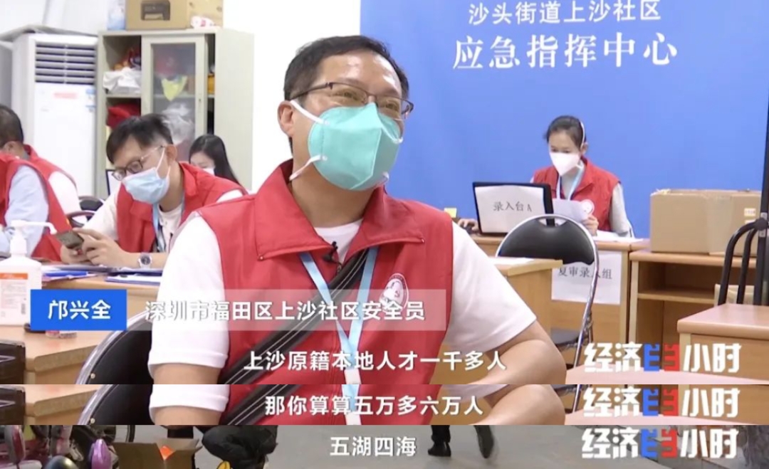 深圳市福田区上沙社区安全员邝兴全所在的上沙社区,是本轮疫情的重灾区,确诊病例最多的一天达到了60人。社区解封后,他的任务也从运送物资、转运患者变成了走街串巷帮大家申请补贴。