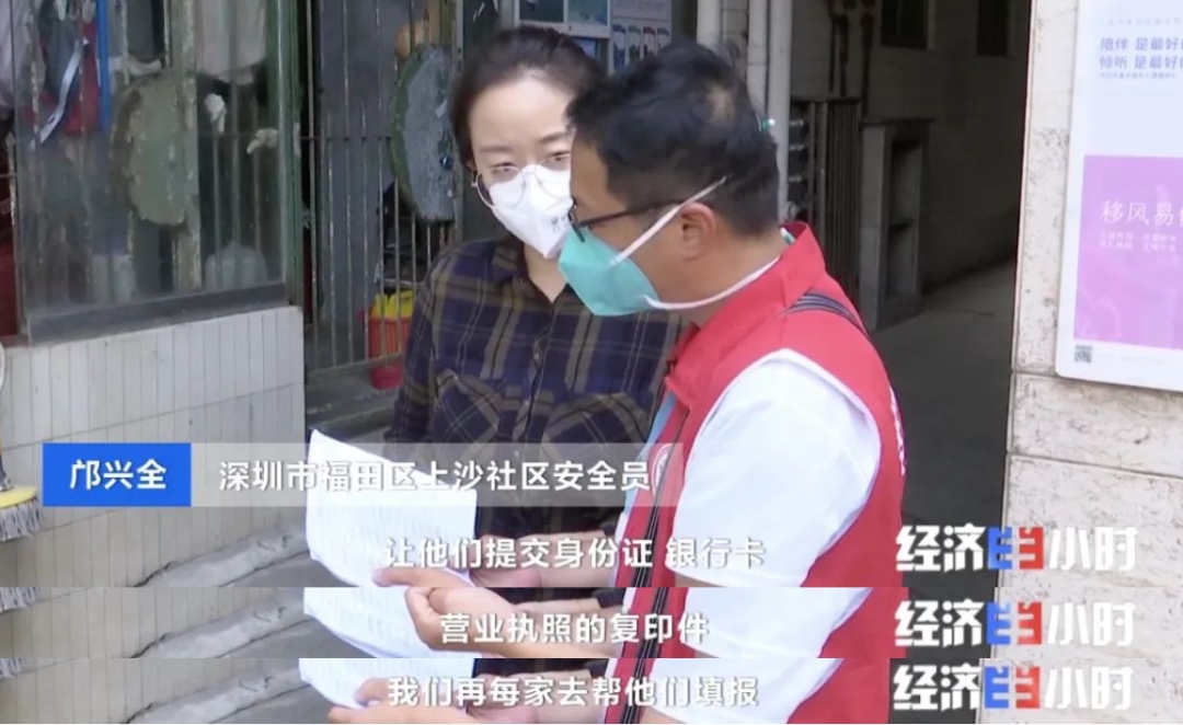 深圳市福田区上沙社区,刚刚解封,社区工作人员正在统计符合小微企业和个人补贴的申请人。按照政策,小微企业补助一万元,个人补助八百元。