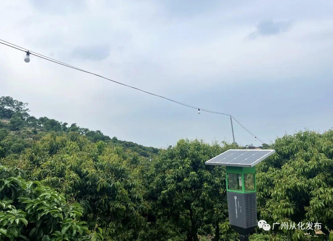 位于从化鳌头镇水西村的高接井岗红糯荔枝示范基地里,通过运用灯光干扰物理防控技术,借助科技的力量强化病虫害绿色防控,推动农业生产力不断跃升,助力从化乡村振兴。