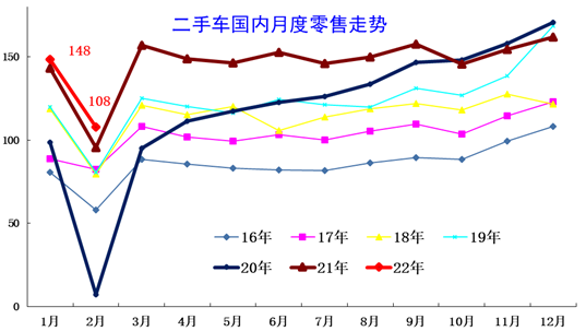 从2021年的表现来看,2021年的秋冬季二手车车源短缺,销量走的并不是很强的特征,主要感觉也是因为芯片的缺损,导致新车的供给不足,二手车的消费价格回升,市场相对较好。