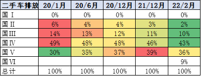 随着国五及以上排放标准的车型逐步进入置换期,其二手车市场中占比明显提升。2021年国五及以上占比38.7%,较去年提升2%;国三、国四、国五排放的二手车异地交易比重基本维持稳定,全国异地交易比重的提升主要是国四及以上车型交易的比重逐步提升带动的,随着国六标准车型逐步进入二手车市场,对全国异地交易比重的提升效用逐步显现。