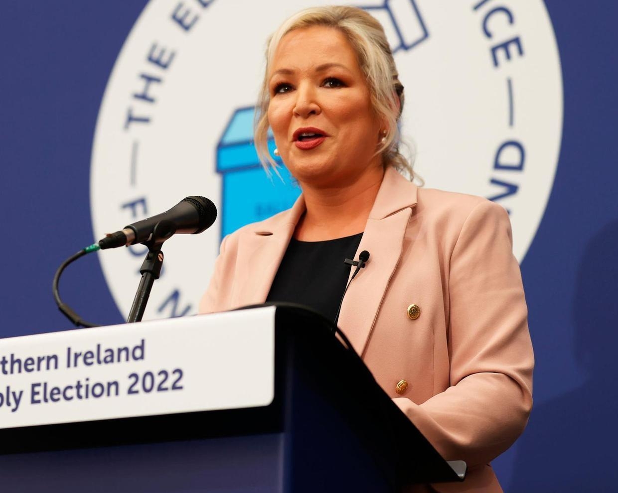 △奥尼尔代表获胜的新芬党致辞(图自《贝尔法斯特电讯报》)