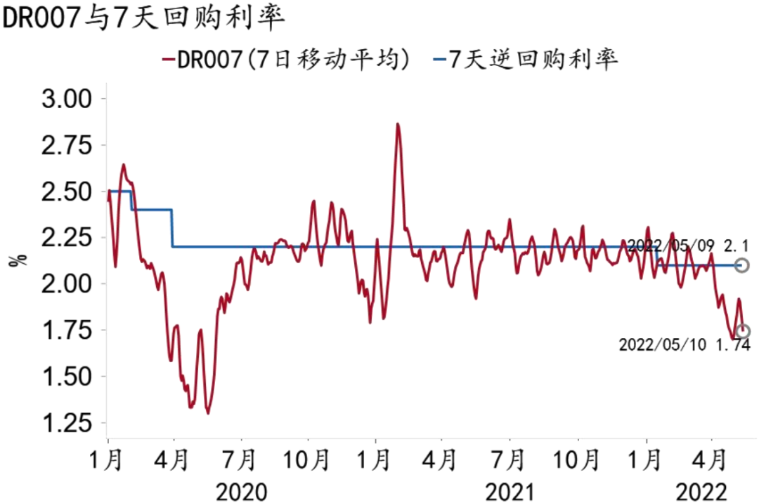 图1:近期货币市场利率位于政策利率下方