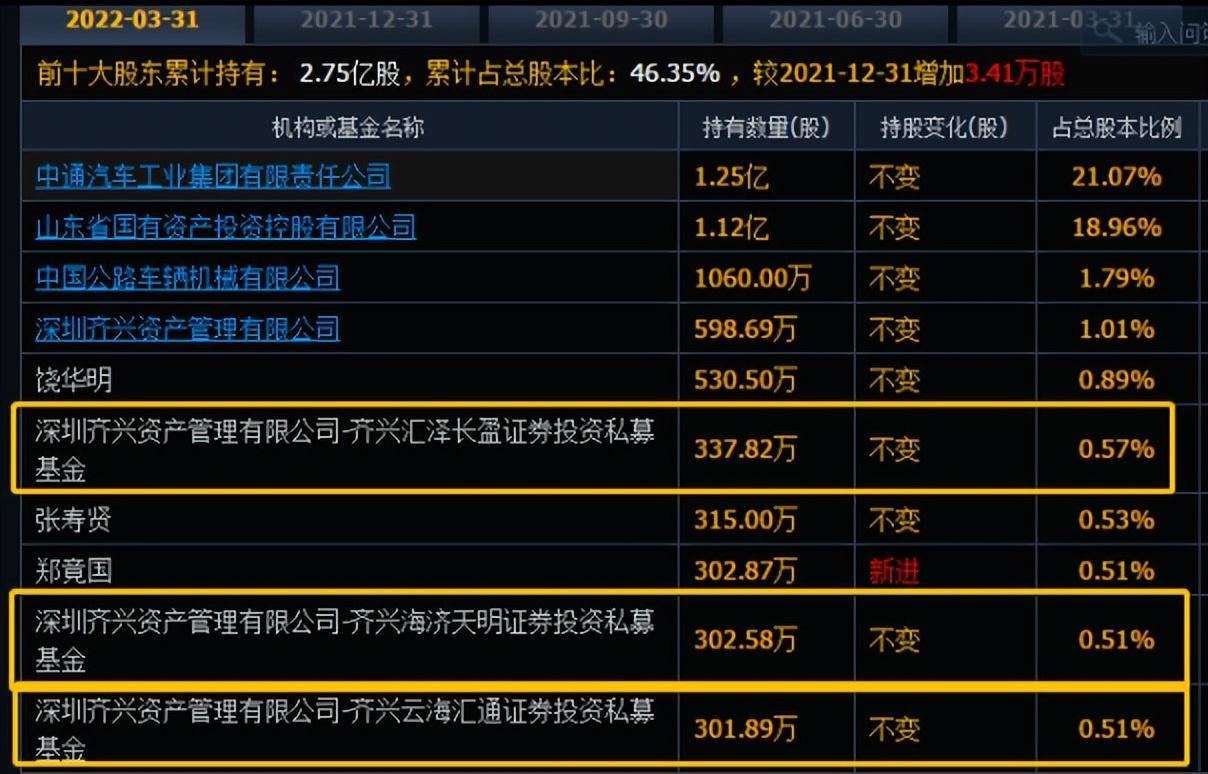 中通客车大涨后踏空的是公募基金。截止至一季度末,未见一只公募基金买入股票。相反,一家名叫“深圳齐兴资产管理有限公司”的私募机构却大笔重仓,旗下三只私募基金进入前十大股东,合计持有1.59%。