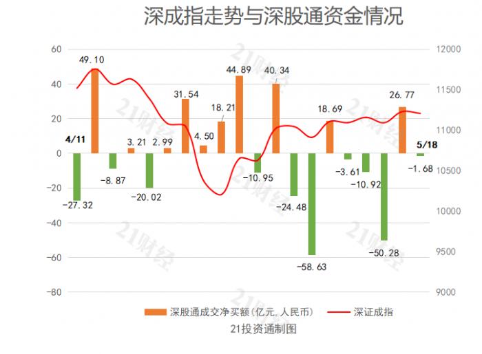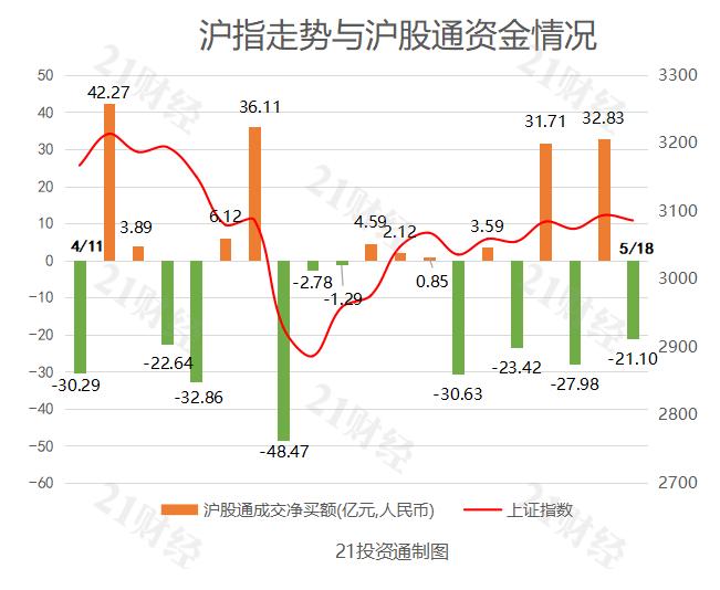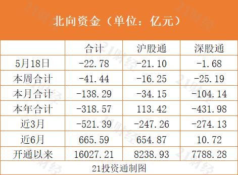 据21投资通(微信号ID:touzit21)智能监测,北向资金全天净卖出22.78亿元,其中沪股通净卖出21.1亿元,深股通净卖出1.68亿元。