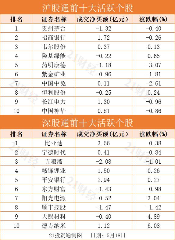 5月18日,大盘整体震荡整理,三大指数均小幅下跌。截至收盘,沪指跌0.25%,深成指跌0.2%,创业板指跌0.16%。