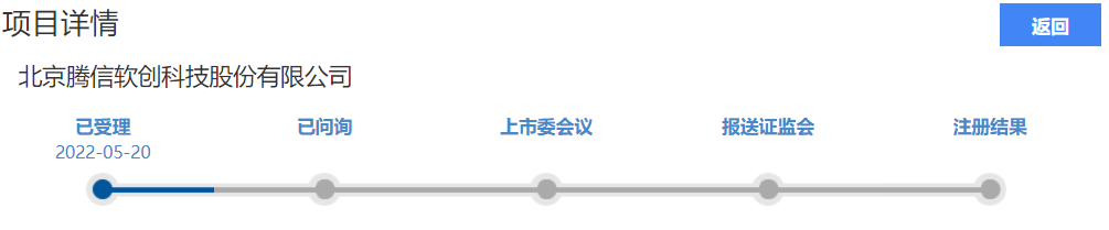 腾信软创于2021年11月26日提交上市辅导申请,11月30日进入辅导阶段,2022年5月6日完成辅导验收,之后向北交所报送的注册申请材料于5月20日获受理。