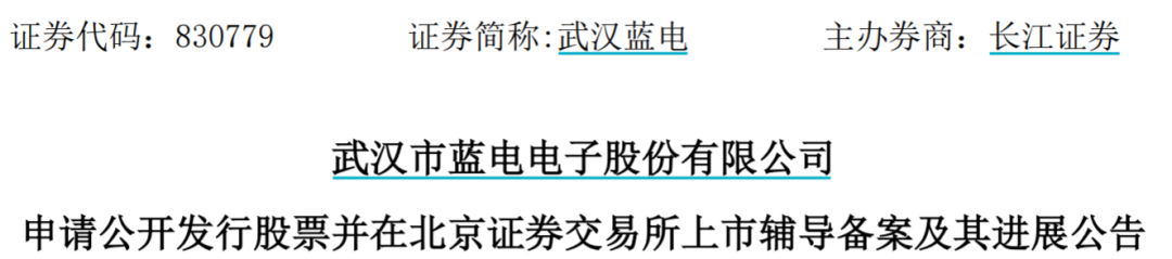 5月20日,武汉蓝电(830779)发布上市辅导备案及其进展公告。