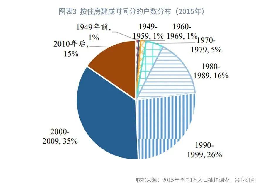 一方面,我国改善型住房市场潜力巨大。 2017年以来,我国商品房年销售面积稳定在17亿平方米左右,标志着我国的住房市场从增量市场转变为存量市场。根据贝壳研究院的估计, 2021年全国二手房成交金额约7.0万亿。 [1] 在此背景下,挖掘居民置换住房、改善住房条件的需求变得十分重要。根据2015年全国1%人口抽样调查的数据,23.2%的家庭居住在1990年之前建成的住房中,26.2%的家庭居住在1990至1999年之间建成的住房中。考虑到2000年之前的住房房龄较老,且配套设施可能并不完善,居民改善住房条件的需求较强。