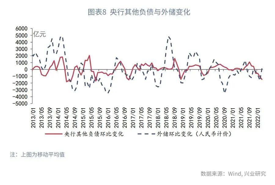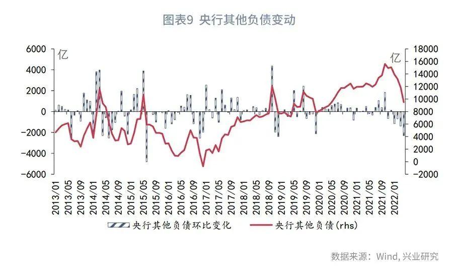 在央行资产负债表中,结存利润可能体现在其他负债项中。历史数据显示,央行其他负债的变化与外储变化相关,反映出外储投资收益的变动可能带来央行其他负债的变动。2022年前4个月,央行其他负债共计下降5557亿。尽管4月央行其他负债余额约9505亿元,较去年末显著回落,但依然处于历史上相对较高的水平。由此来看,央行或许仍有一定规模的结存利润。因此,在条件允许的情况下,可以考虑适度加大结存利润的上缴力度,用于稳定宏观经济大盘。