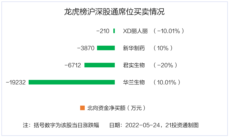5月24日,北向资金参与龙虎榜中的个股共有4只,合计净卖出3亿元。其中沪股通净卖出2 股,合计净卖出6921.5万元;深股通净卖出2 股,合计净卖出2.31亿元。