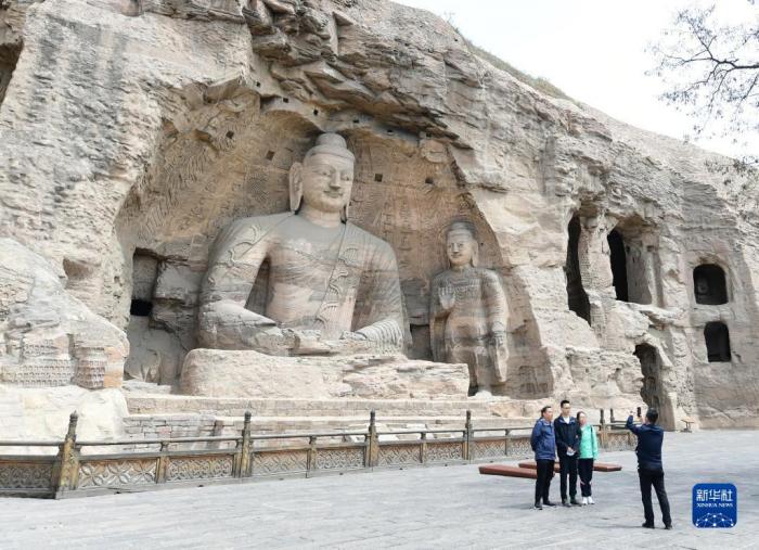 5月11日,游客在云冈石窟景区参观。新华社记者杨晨光摄