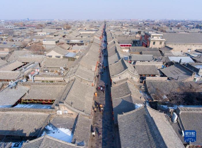 这是2月8日拍摄的平遥古城一角(无人机照片)。新华社记者杨晨光摄