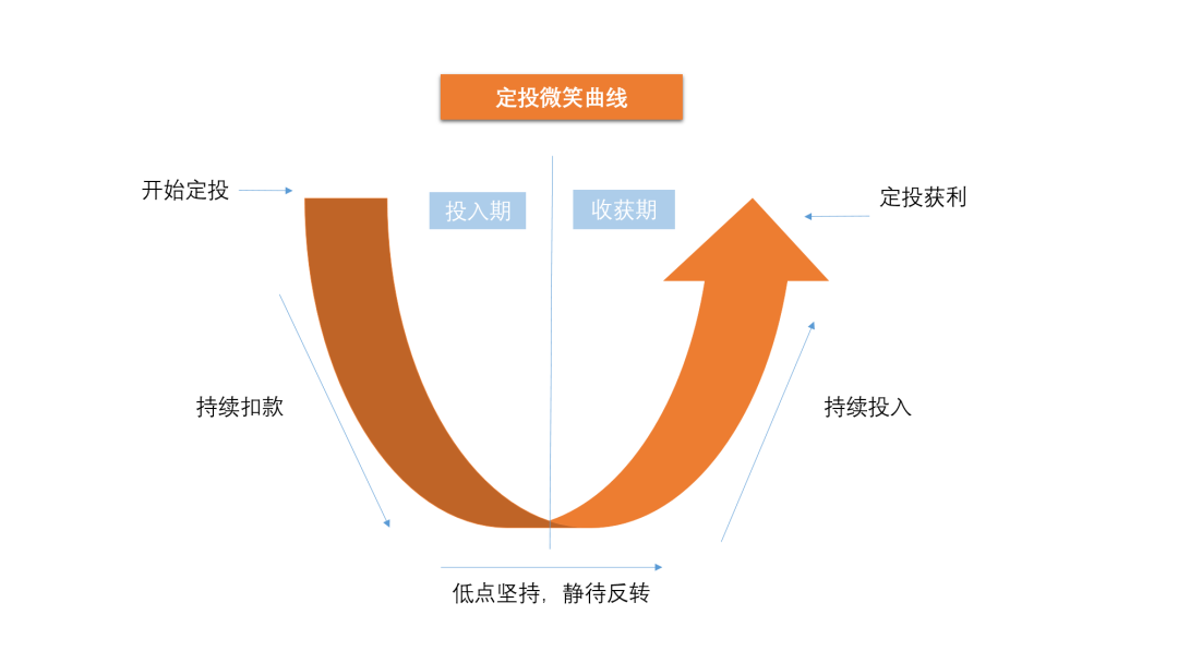 甚至用实际行动来告诉大家,遇到市场波动,不要灰心丧气,也不要总是寄希望于抄底,反而是通过定投,以低成本来累积更多的筹码,坚持长期投资、不盲目止损,以迎来最终曲线的微笑。