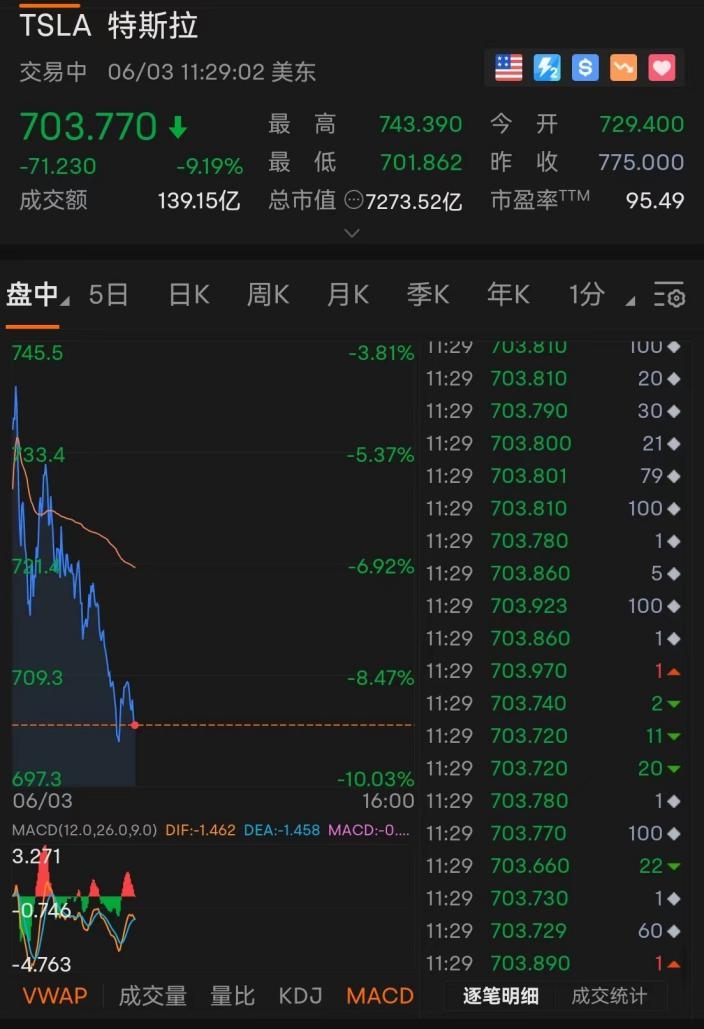受此影响,北京时间周五晚上,特斯拉美股盘中暴跌超9%,市值迅速蒸发4900亿元人民币。还带动美股新能源车板块集体大跌,截至发稿时,Nikola跌超7%,Rivian跌超5%。与此同时,马斯克个人身家当天也蒸发了1072亿元人民币。